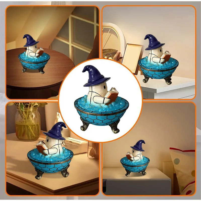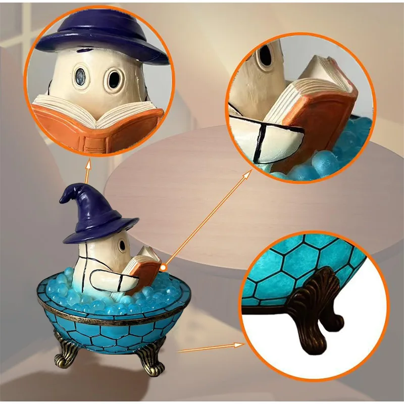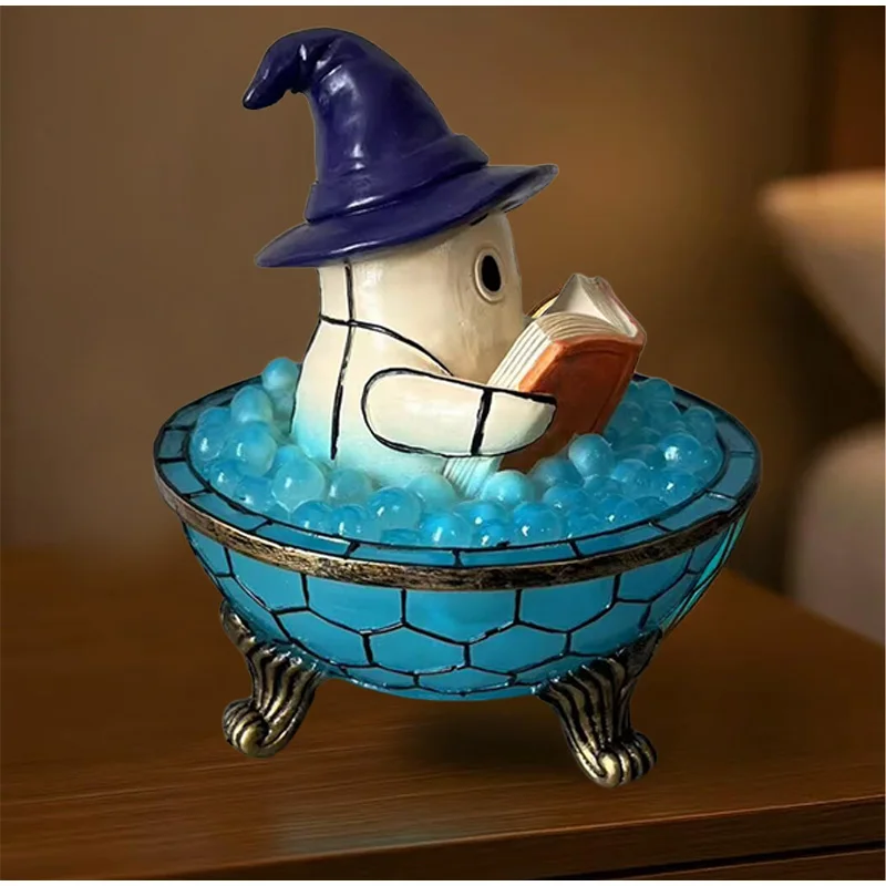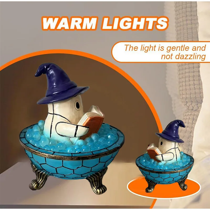 This playful ghost lamp features a charming little spirit relaxing in a bubbling bathtub — a perfect mix of cute and spooky.
